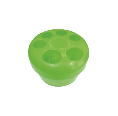 Recipiente para preparação das mãos para a manicure. Possui tampa com orifícios para encaixe dos dedos e tampa com rosca para melhor fixação.