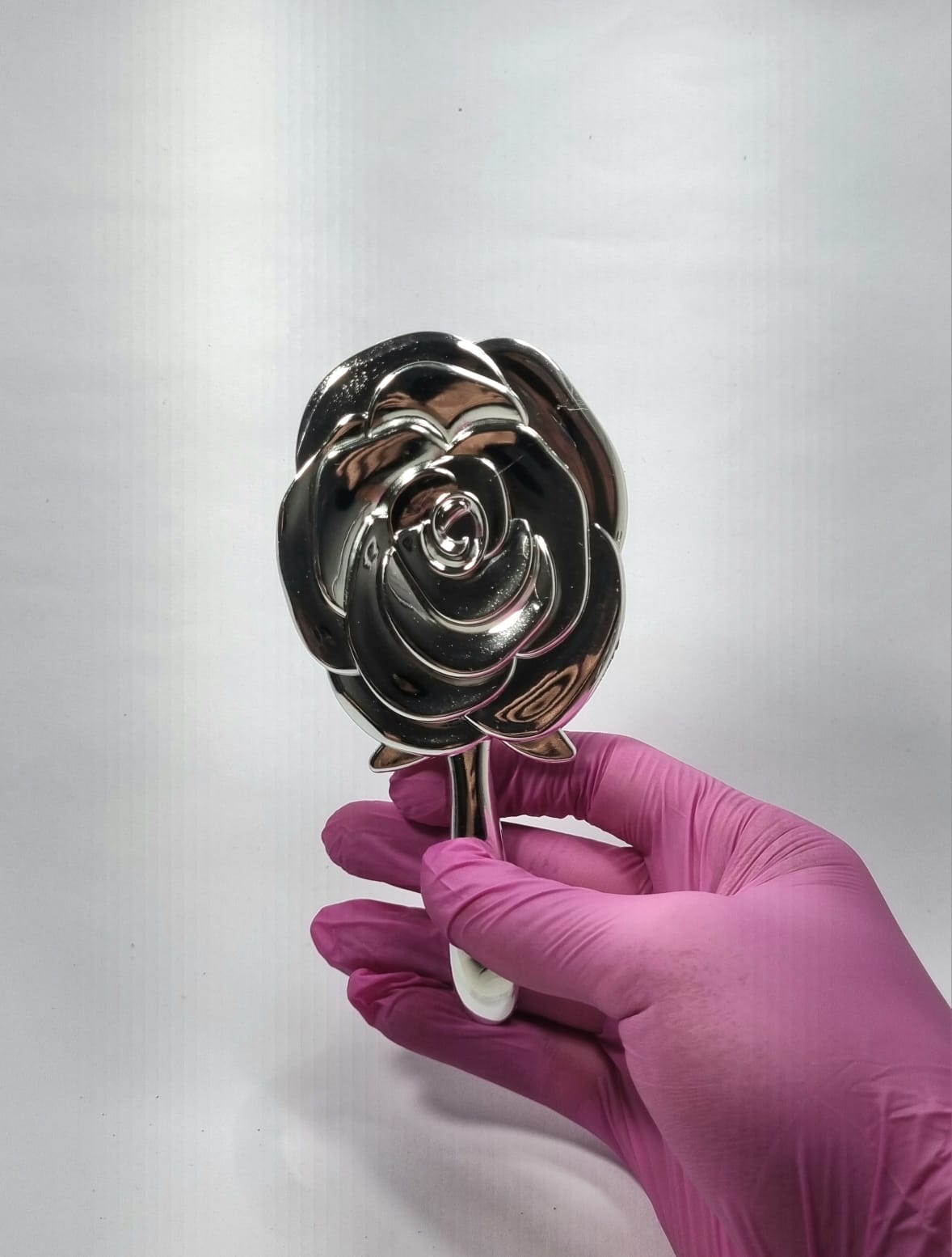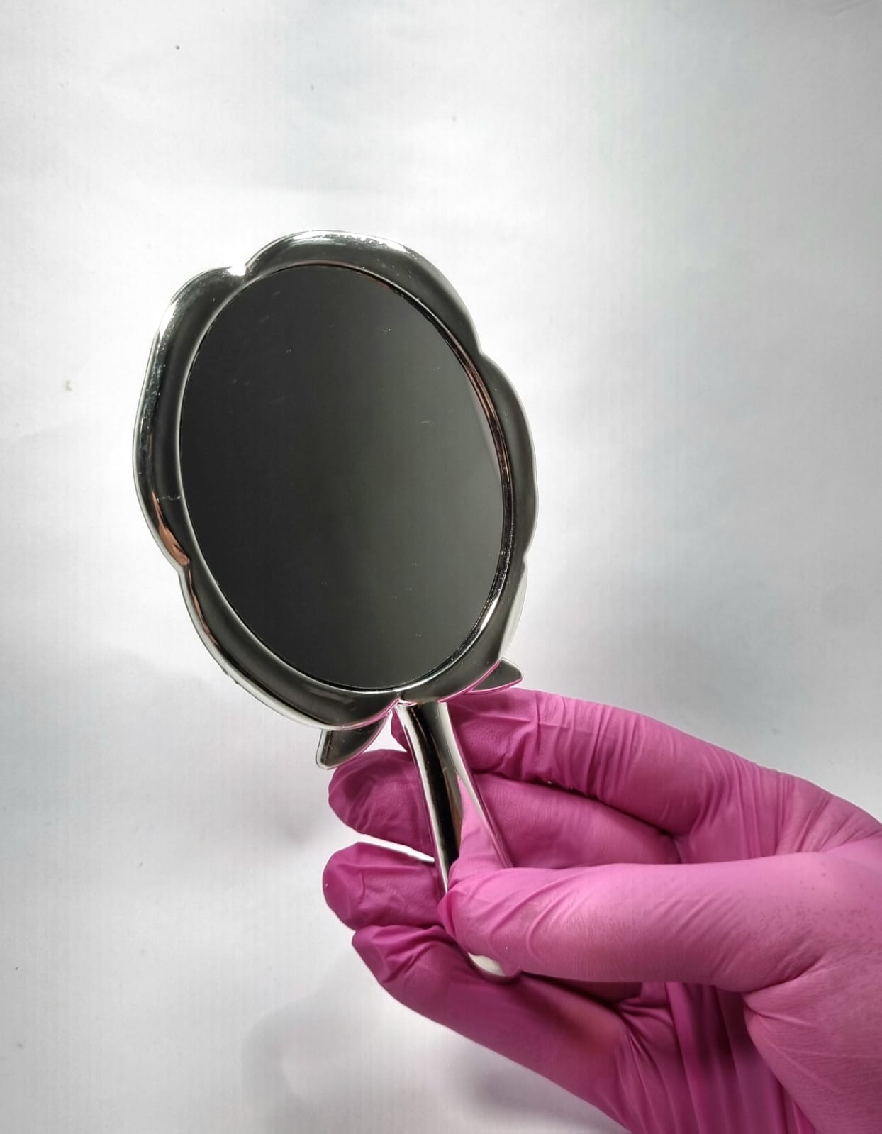 Este espelho de mão em formato de flor é a escolha perfeita para quem busca elegância e praticidade em um só acessório. Sua superfície oferece uma reflexão clara e nítida, proporcionando precisão em cada detalhe.