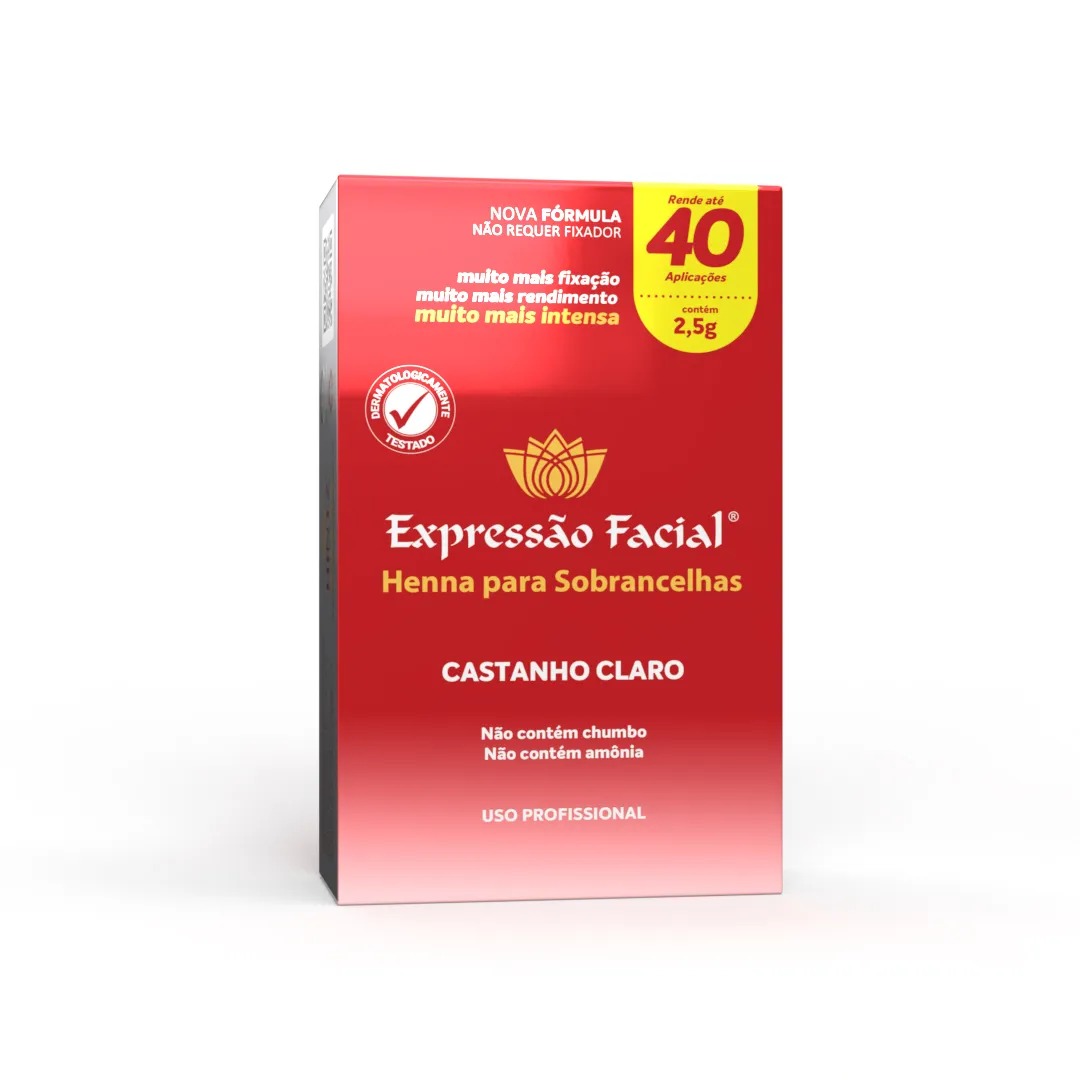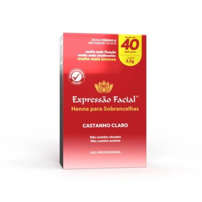 Realce sua beleza com a Nova Henna Expressão Facial em Castanho Claro. Produto de alta qualidade para 40 aplicações de 2,5g
