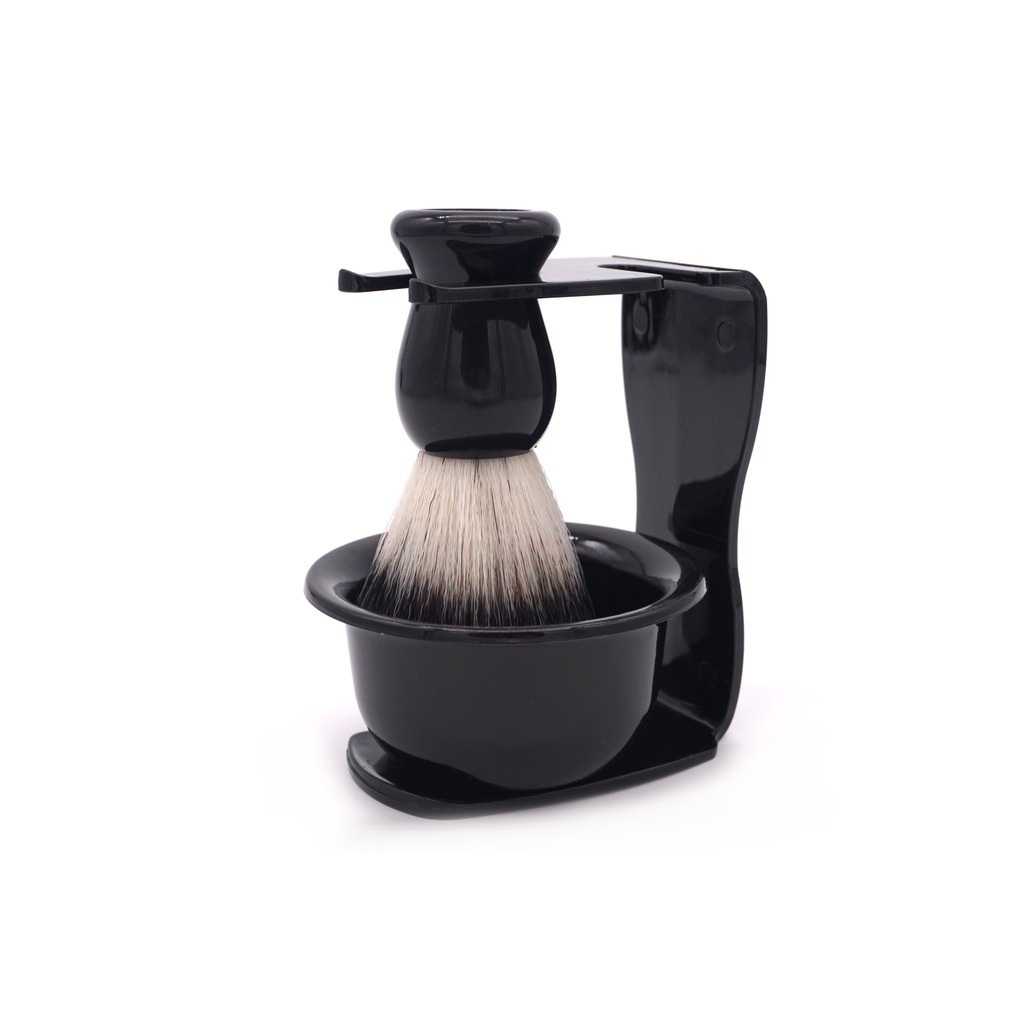 O kit de barbear com pincel, cumbuca e base para gilete é um conjunto essencial para homens que apreciam o ritual do barbear clássico e tradicional. Este kit oferece uma experiência de barbear mais luxuosa e sofisticada, diferenciando-se dos métodos modernos como aparelhos elétricos ou descartáveis.