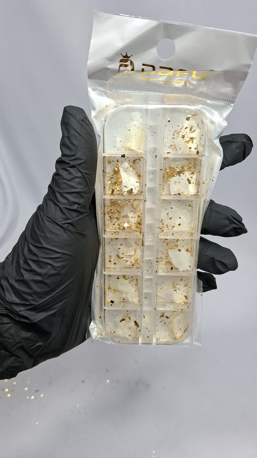 kit de madre pérola com folhas de ouro;