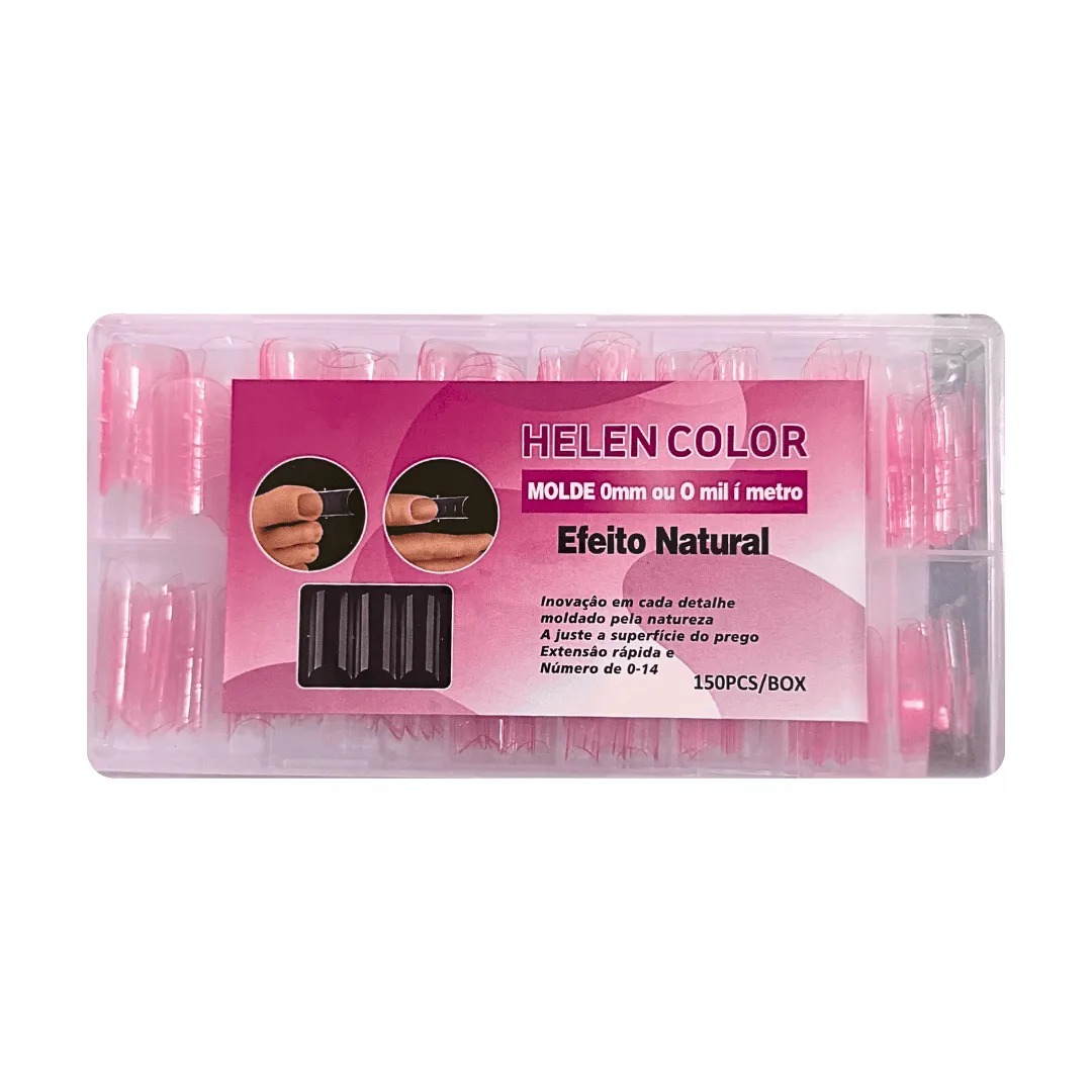 O Molde Efeito Natural 0mm Rosa Helen Color traz praticidade para a mesa e um acabamento mais natural nas extensões. Com função 2 em 1 ? molde russo e molde F1 ? ele oferece liberdade para escolher a técnica que mais se adapta ao seu estilo de trabalho. São 14 tamanhos diferentes, ideais para unhas das mãos e dos pés.