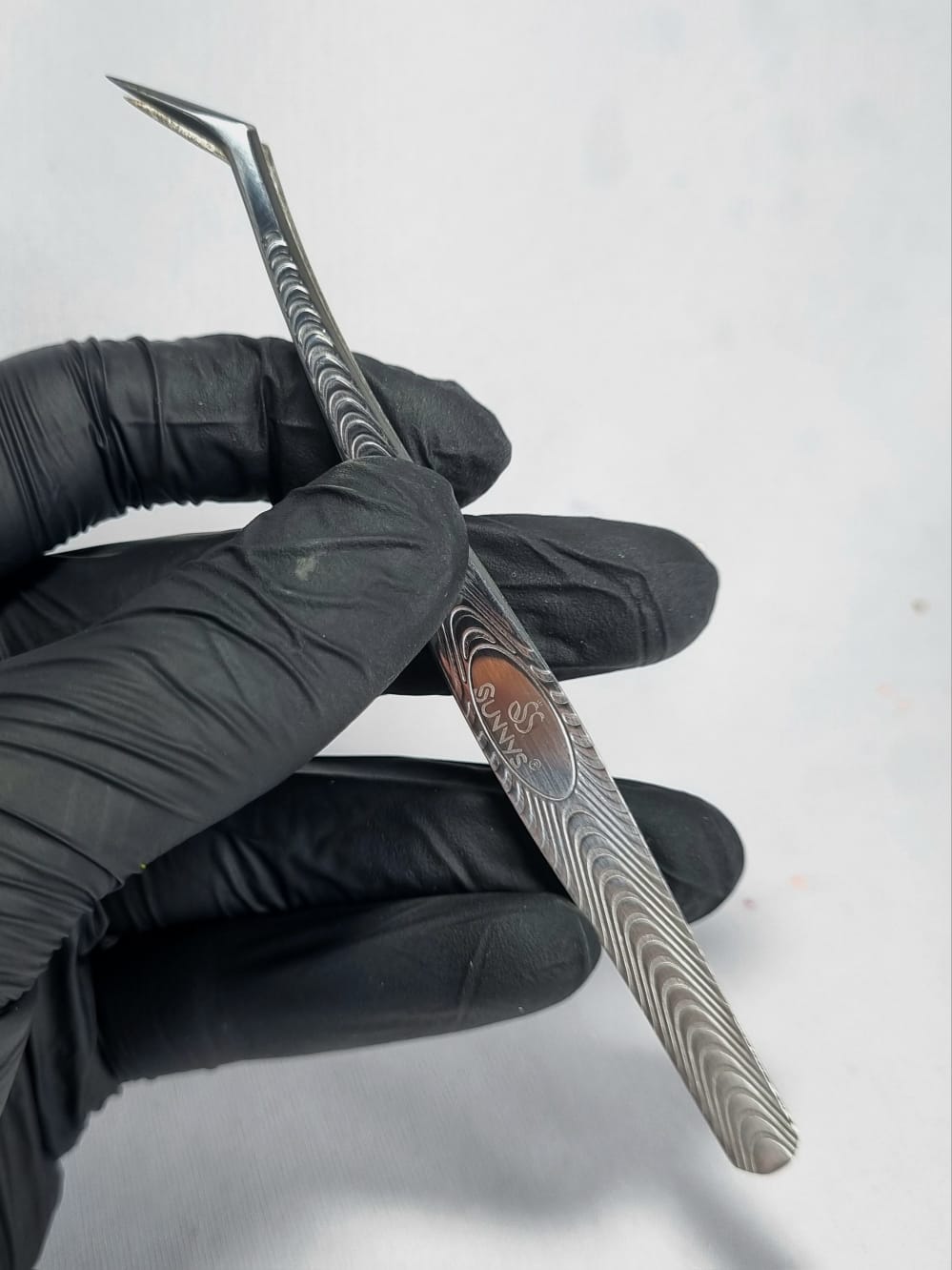 Pinça profissional SUNNYS para extensão de cílios em aço inoxidável.