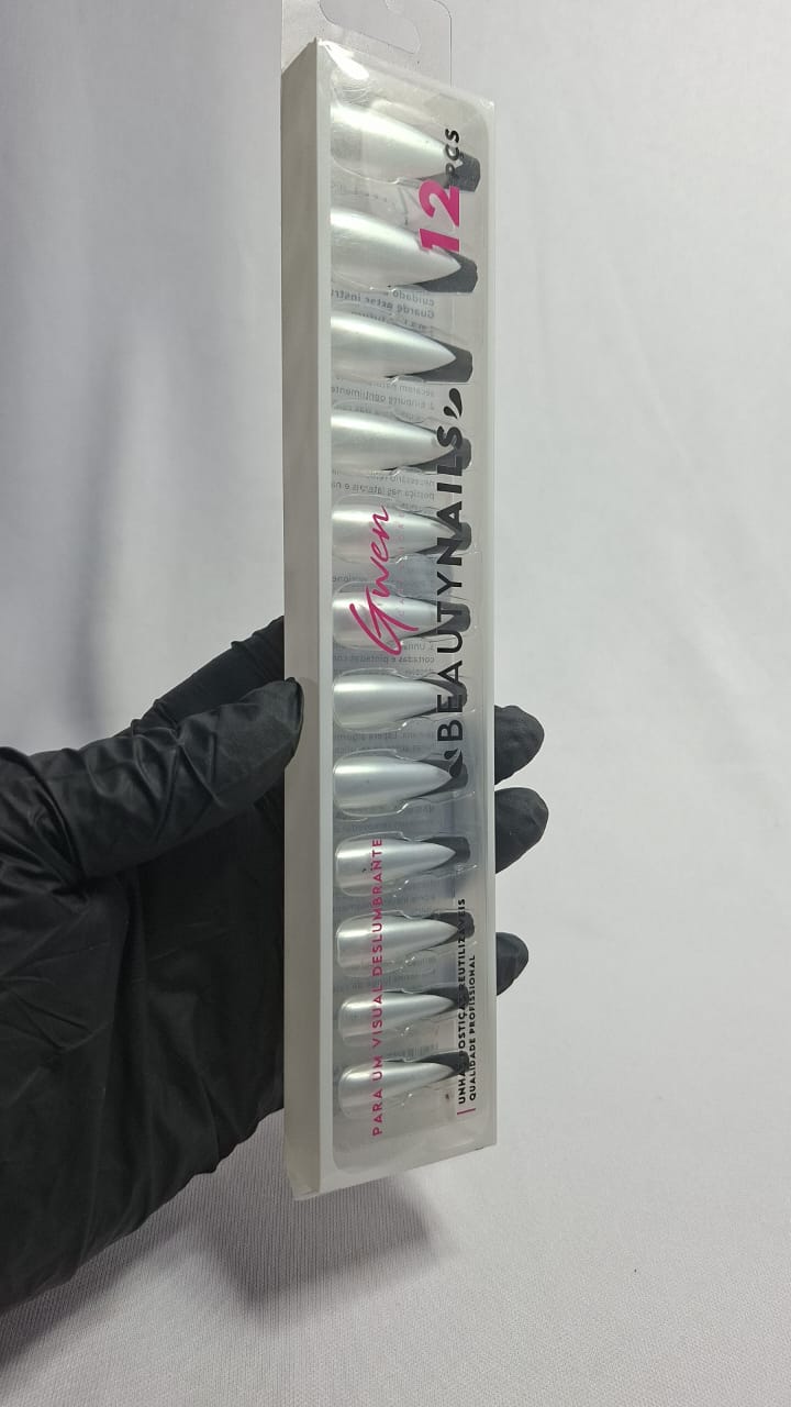 UNHA POSTIÇA DECORADA GWEN 12UN PEROLA COM PRETO